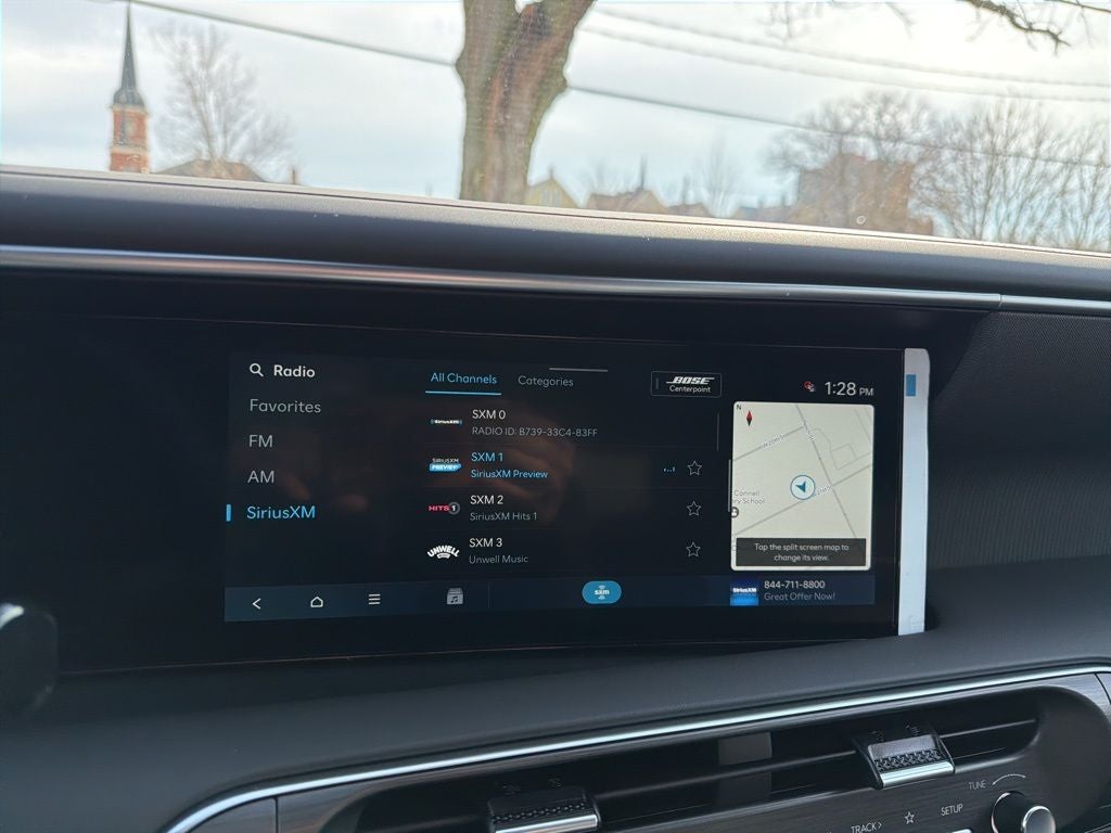 - Radio: Infotainment Navigation System -inc: Bose 14-speaker premium audio system w/Centerpoint and SoundTrue enhanced technology, 12.3" color touchscreen, wireless Apple CarPlay and Android Auto, HD Radio, Sirius XM, Passenger Talk 2.0 in-car intercom system, dynamic voice recognition, rear seat quiet mode, Bluetooth® hands-free w/wireless audio streaming, multiple device connection (up to 2 devices), USB connectivity, Bluelink + connected car services, Wi-Fi hotspot, steering wheel audio controls and Over-the-Air (OTA) software updates