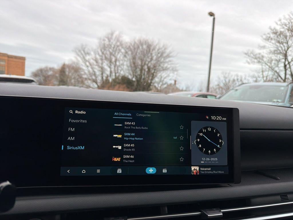 - Radio: AM/FM/HD Audio System -inc: 12.3" color touchscreen display, 6 speakers, SiriusXM satellite radio system (3-month trial subscription), wireless Apple CarPlay and Android Auto integration, controller OTA update capability, Blue Link connected car system and USB connectivity