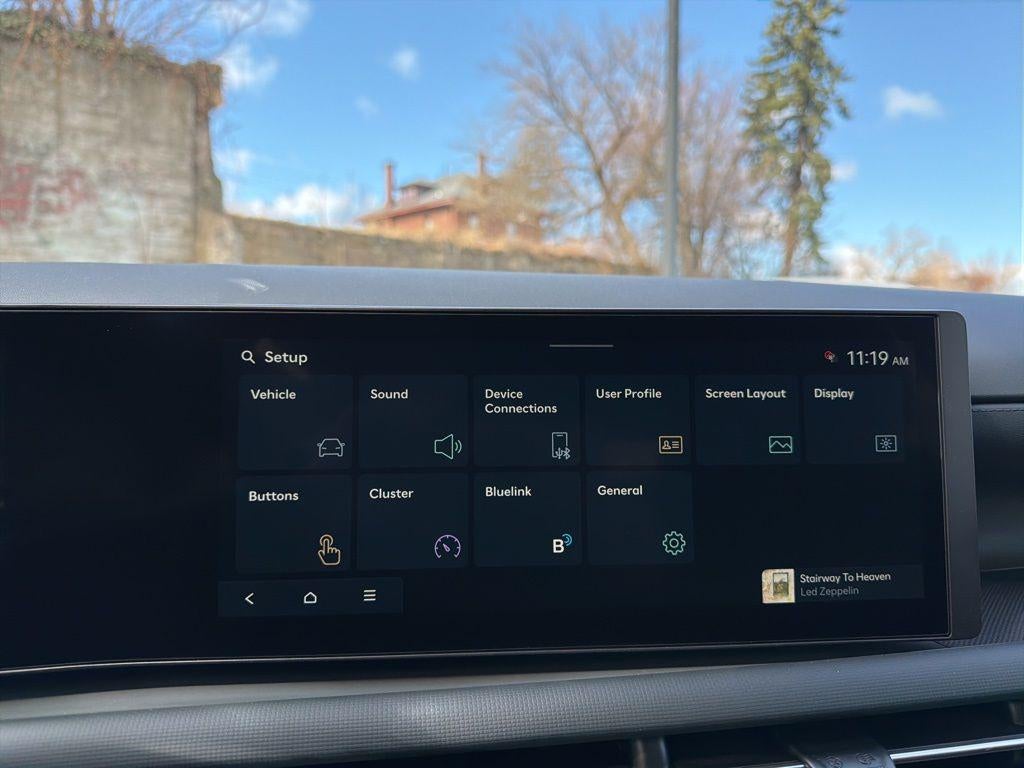 - Radio: AM/FM/HD Audio System -inc: 12.3" color touchscreen display, 6 speakers, SiriusXM satellite radio system (3-month trial subscription), wireless Apple CarPlay and Android Auto integration, controller OTA update capability, Blue Link connected car system and USB connectivity