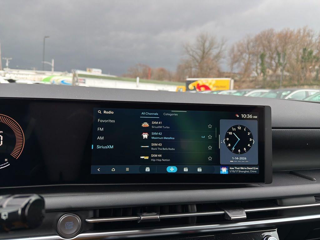 - Radio: AM/FM/HD Audio System -inc: 12.3" color touchscreen display, 6 speakers, SiriusXM satellite radio system (3-month trial subscription), wireless Apple CarPlay and Android Auto integration, controller OTA update capability, Blue Link connected car system and USB connectivity